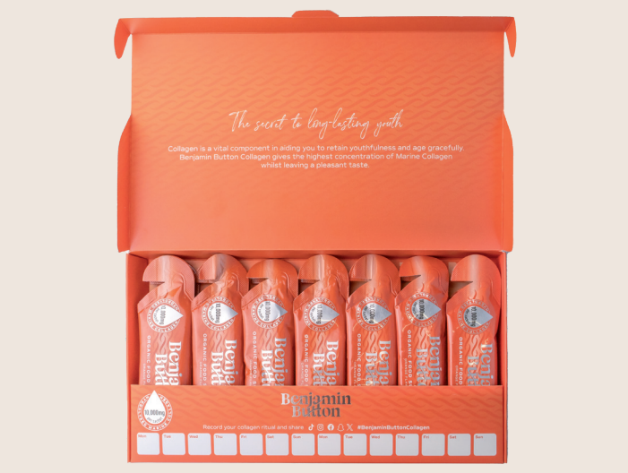 Founded with a mission to make science-backed, premium collagen supplements accessible and effective, Benjamin Button launched in London with a simple goal: help people feel younger, healthier, and more confident from the inside out. Our debut range of liquid marine collagen sachets in orange quickly gained traction thanks to their high potency, clean ingredients, and visible results.
