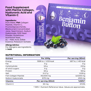 Benjamin Button 12,000mg Marine Collagen Drink - Blackcurrant Liquid Sachets